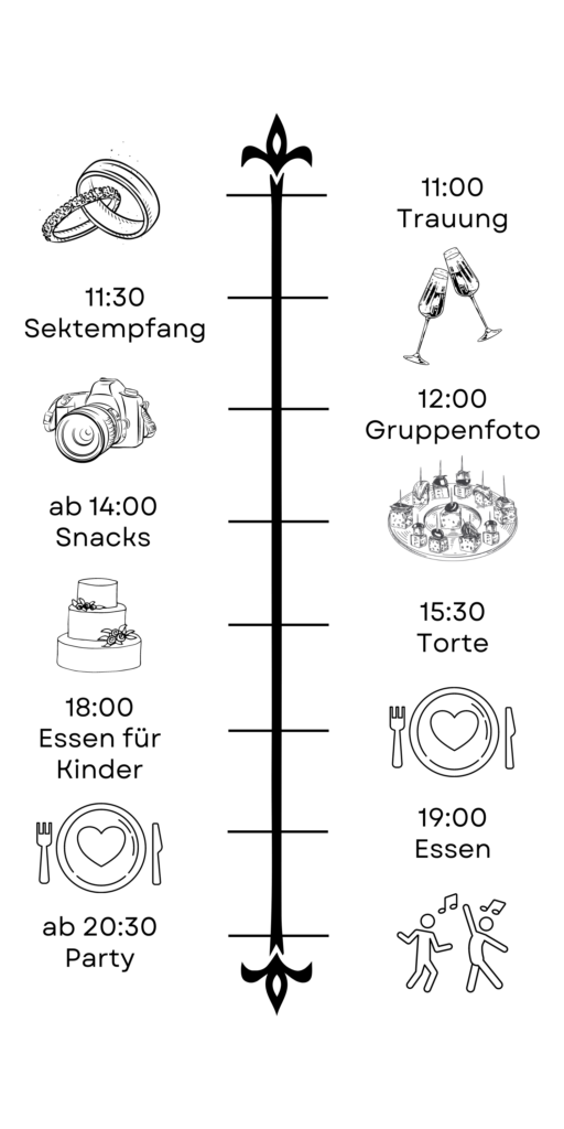 Wir würden uns freuen, euch bereits bei der Trauung dabei zu haben (bitte gebt das im Feld „Bemerkungen“ mit an)